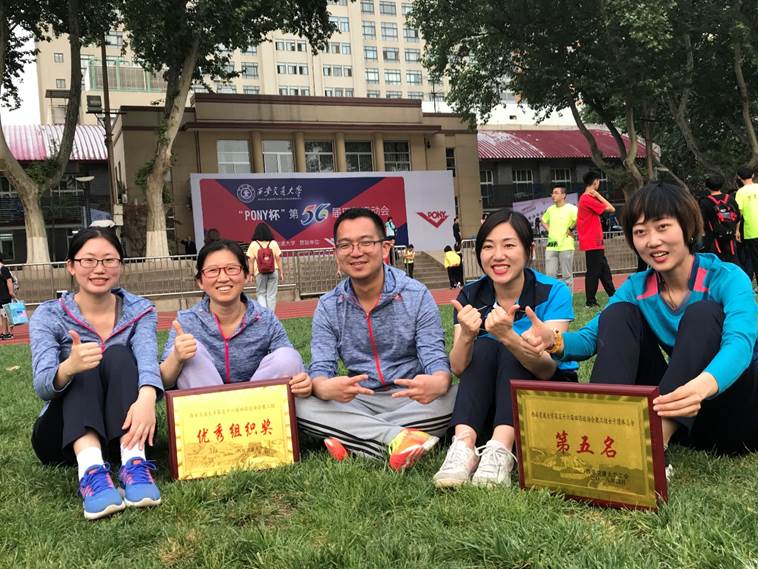 此外,本届运动会人文学院教工组还有其它历史突破,优秀组织奖、女教工团体总分第五名、教工广播体操第八名、教工女子4*100米接力第二名、教工穿梭接力第四名等。这是人文学院教职工践行“西迁精神”,落实“四面旗帜”的集体主义最真实的体现!
