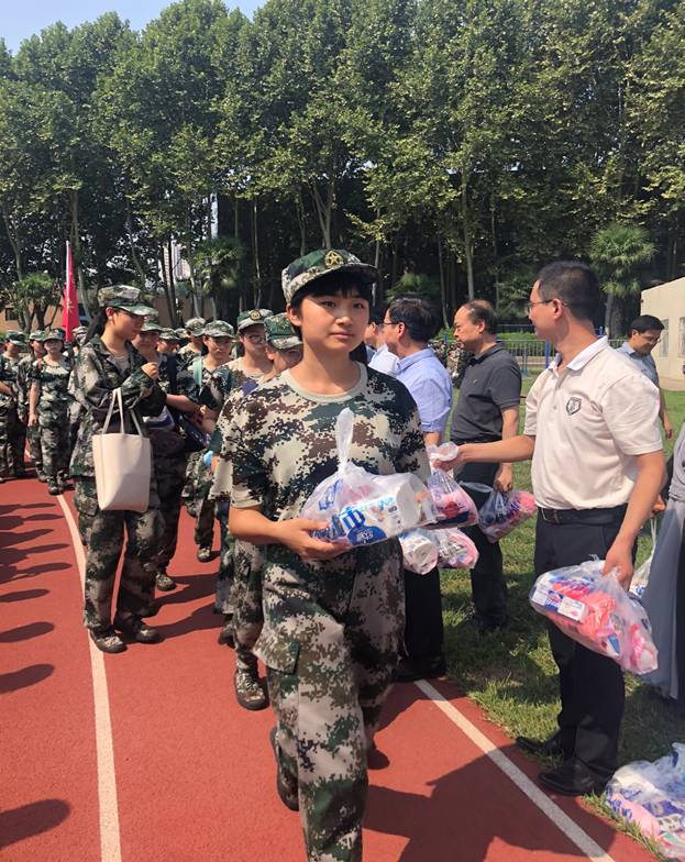 人文学院领导、各系老师及班主任发放新生军训慰问品