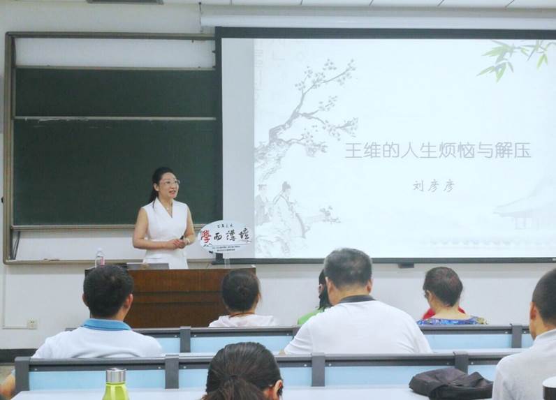 人文学院中文系副教授刘彦彦老师担任,讲座以“王维的人生烦恼与解压”为主题,文史结合,对王维其人,其诗,其事做了系统的阐释。