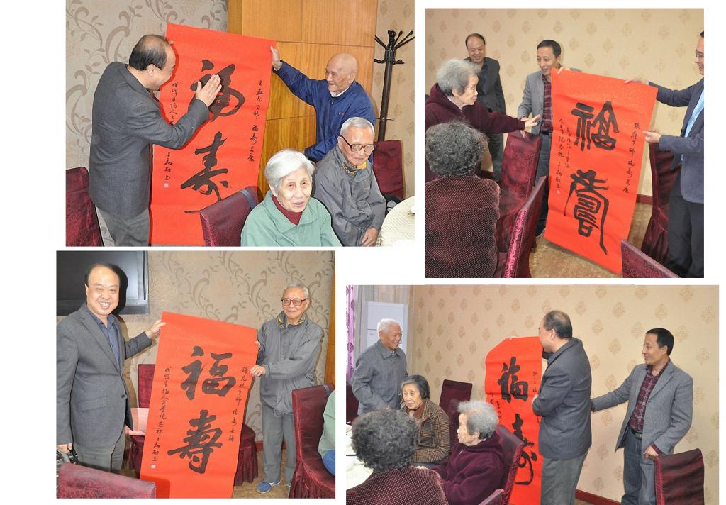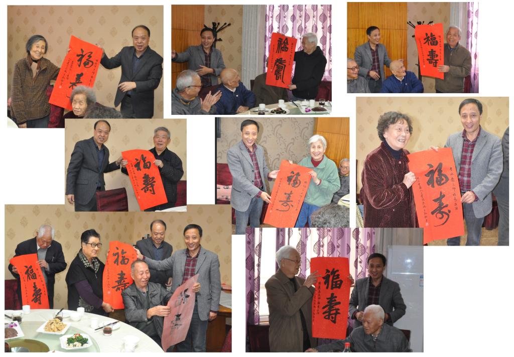 李黎明院长首先代表学院向老同志们表示节日的问候和祝福。通报了学院一年来学科建设、队伍建设和创新港建设进展情况。随后,院长、书记代表人文学院全体师生,向每位老同志赠送了学院王劲副书记题写的“福寿”书法作品一件,祝愿老同志们身体康健,生活愉快,幸福安康。