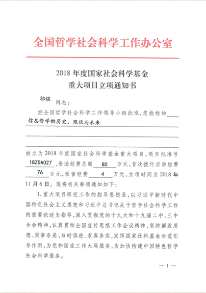 王 伟:您申报的项目涉及信息哲学未来的发展,您认为在未来它可以有哪些方面的发展呢?