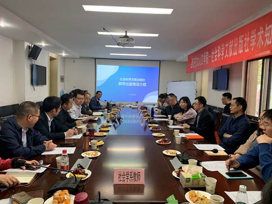 人文学院实证社会科学研究所,与实证所研究员、新闻学院教师进行学术知识服务座谈会。人文学院院长李黎明教授、副院长张顺教授、学校教务处副处长杨建科教授、新闻学院副院长张宏邦教授出席本次座谈。
