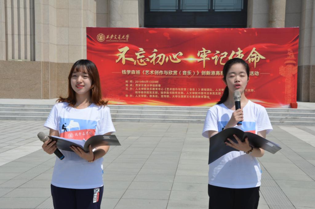 6月13日,一场主题为“不忘初心,牢记使命——创新港高歌颂祖国”的快闪活动在新落成的交大创新港举行。这次活动的主角是钱学森学院《艺术欣赏与创作(音乐)》课程班的66名同学,还有人文学院音乐教育中心党支部、钱学森学院党支部、钱学森书院党支部、中国书法系党支部的教师党员。