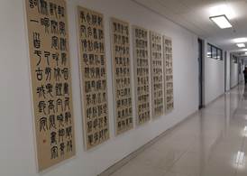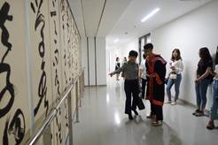 中国书法系书法51班9名毕业生完成,展览共展出书法、篆刻、国画作品48组、99件,作品形式和装裱样式专为创新港人文社科研究院办公空间定制,五体具备,形式多样,有30多平方米的巨制,也有一平方尺的小品。这些作品既是毕业生对传统文化艺术的学习汇报,也是包含着浓浓的祝福,献给中国西部科技创新港的启航贺礼!件件功底扎实、文辞讲究,与创新港空间和谐相融,吸引了众多师生、家长及书法爱好者前来观展。