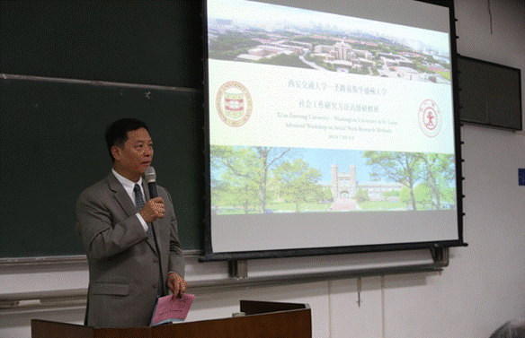 边燕杰教授对长期以来为团队做出指导和支持的王树国校长、席光副校长以及学校相关部门的各位领导表示感谢,并对圣路易斯华盛顿大学的两位教授表示欢迎。他代表社会学团队,向郭申阳教授及其率领的社会工作团队开办的高级研修班表示衷心的祝贺。边教授特别指出,费孝通教授说过社会学应该是一门“经世致用”之学科,这对社会工作也同样适用,期待大家学以致用。