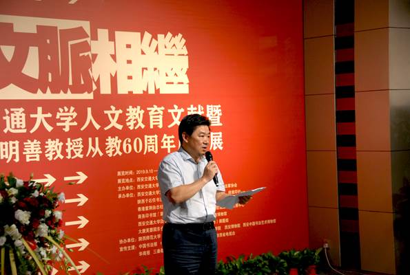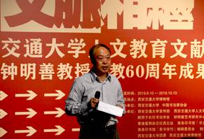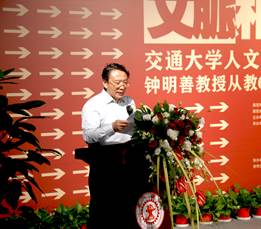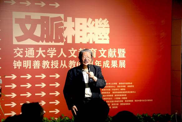 党委书记张迈曾首先发表致辞,他从个人与钟明善教授交往的朴素小事谈起以表敬意,表示琐细点滴恰恰展现了一个知识分子的家国情怀与赤子之心,总结钟教授的艺术成就之外,总结其处世品格同样重要。历史上唐文治、张元济、蔡元培、沈曾植、叶恭绰、李叔同等文化先贤筑基交大文脉,钟明善教授不仅以诗书画印皆精擅而闻名海内外,而且以扎实的理论研究与高水准的艺术教育为新时期交通大学文化艺术教育传统的承继、校园文化的建设、学生文化素质的培养及人文艺术学科的建设做出卓越贡献,高瞻远瞩,影响深远,堪称新时代恢复、发展交大人文教育的楷模。他同时感谢社会各界对 161sex