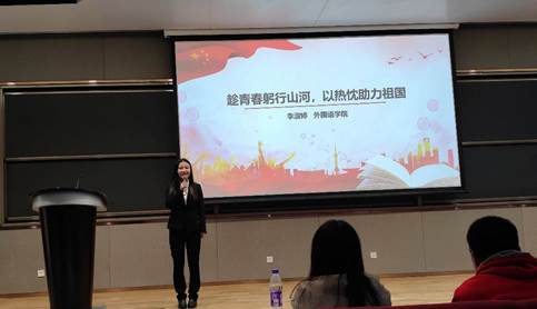 不同于他人,他以一种分享的形式展开了自己的演讲。他用5W2H(what、why、when、where、who、how、how much)的思路展示了自己对爱国的思考和感悟,以青年之声诉说了对祖国母亲的热爱之情。