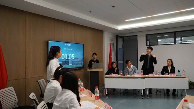 比赛双方是人文学院“TREE NEW BEE”队和管理、经金学院“憨憨说的都对”队,围绕“新型科学技术的推广应该重视科学家的论证还是公众的接受度”这一辩题进行了辩论。正方从科学家论证的客观性与公众接受度的可调节性出发,结合电动汽车举例讨论了科学家论证的重要性。反方则从科技造福民生出发,指出公众接受度高才说明新技术推广的好,并以DDT为例进行了论证。最后经评委投票计分,正方“TREE NEW BEE”队获得了第一场比赛的胜利,经评委综合考虑,正方四辩李青龍选手被评为本场最佳辩手。