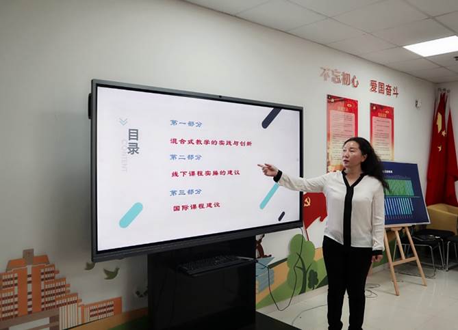 音乐中心曹耿献副教授以《交响音乐赏析》课程为例作了关于“线上线下混合式教学与创新”的主题分享。曹老师首先介绍了在这门课程中是怎样做到混合式教学的实践与创新,其次对线下课程实操提出建议,突出翻转课堂对课堂互动的巨大帮助,最后分享了关于国际课程建设的经验。