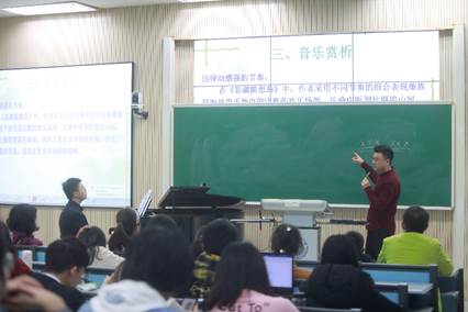 最后一首作品是《夕阳箫鼓》,由陶敏霞教授亲自表演,音乐次鲜明、错落有致、音色惟妙惟肖,恰似一幅优美的山水画面展现在面前,同学们听后掌声雷动、欲犹未尽。