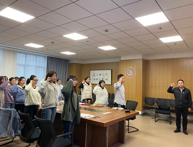 11月30日,人文学院硕0115和0116党支部召开党员大会暨“‘政治生日“仪式,重学党章、重温入党誓词、重读入党申请书,围绕“我的入党初心“进行讨论与反思,结合自身发展为党送祝福,讨论论表决预备党员的转正事宜。人文学院辅导员闫潇出席会议,人文学院硕0115和0116党支部书记倪蒙主持会议。