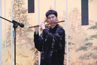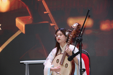 学生艺术团民乐团的副团长谌弦月为大家带来了以唐代诗人李白的词作为基础,由赵亮棋谱曲,被用于《长安十二时辰》中的中阮独奏《清平乐•禁庭春昼》;人文学院哲学91班的阴睿同学带来了一首具有浓厚中国风,经由传统乐器竹笛改编演奏的《如果当时》,乐器声古韵悠扬,婉转动人,为观众们营造了诗曲合一的氛围。