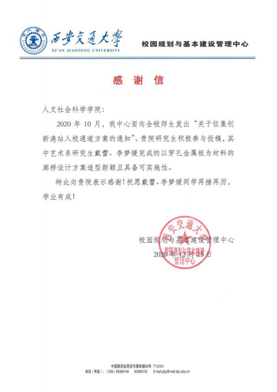 在校园规划与基本建设管理中心举办的“创新港站入校通道方案”征集活动中,人文学院研究生积极参与投稿。2020年12月25日,校园规划与基本建设管理中心向 161sex