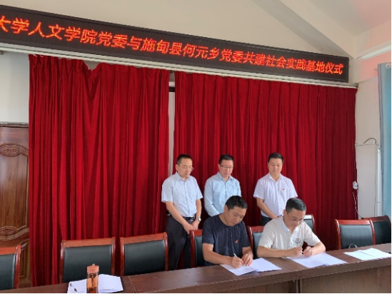 人文学院党委副书记王劲与施甸县何元乡党委书记蒋军礼签署社会实践基地共建协议。