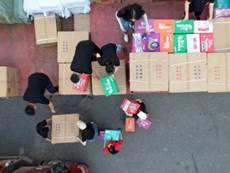 29日下午3点到30日凌晨一点,装载援豫物资的货车装车完毕,人文学院高培中心主任黎荔带领工作人员和志愿者团队奔赴一线,确保物资发放到受灾群众手中。