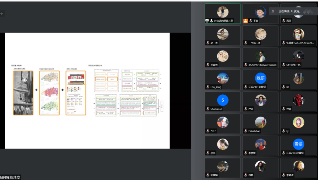 相关的研究工作与叶欣涛老师开展了对谈,包括文化遗产视角下的城市空间整合、中国城市建筑档案体系在未来的建构趋势等问题进行了再思考。最后叶欣涛老师对在线师生提出的相关问题进行了详细解答,包括前期要素调研的复合方法、纵向和横向比较下相似城市局部片区的研究意义、设计过程中如何平衡土地价值、在区域设计中如何考虑建筑的保留与摒弃、城市建筑如何在整体社会发展背景下从微观到中观再到宏观实现过渡、国内外设计管理之差异等诸多问题。
