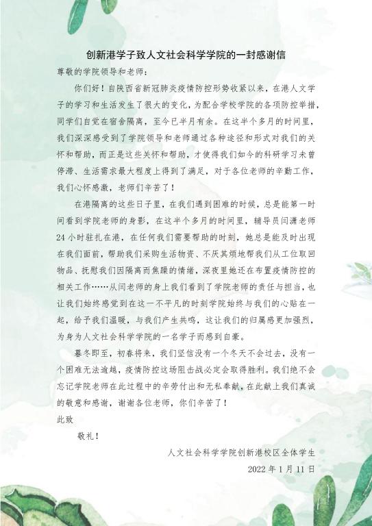 人文学院现有在港学生110人,疫情发生以来,辅导员闫潇迅速响应学校和学院的号召,驻扎创新港,全面负责人文学院研究生在创新港的各项后勤保障工作。