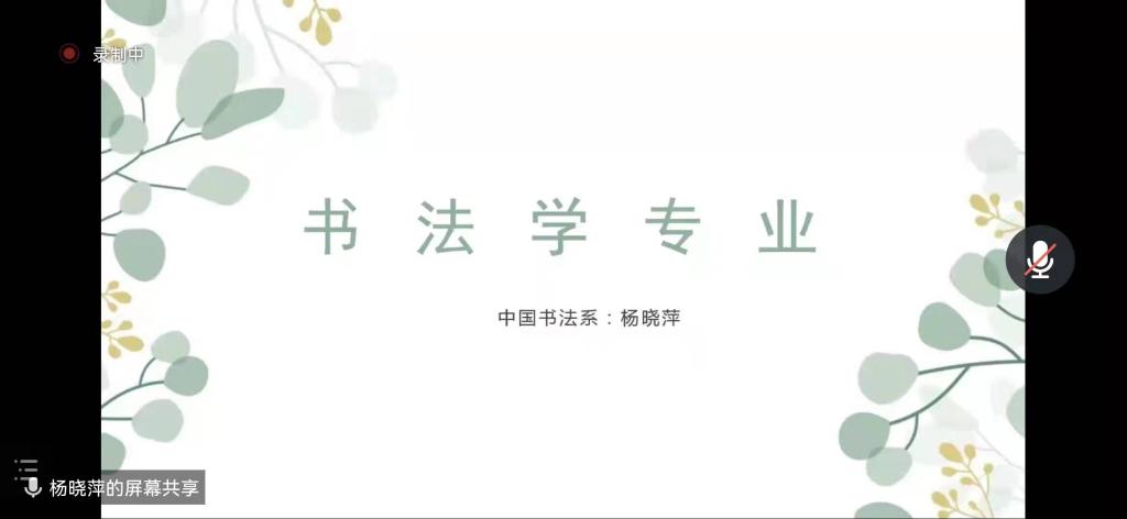 书法系主任杨晓萍副教授介绍了书法系学科概况、师资队伍、科学研究情况,重点对书法学专业本科生的课程、实习、就业、推免等人才培养情况进行了解读。