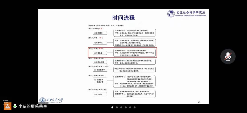 社会学系副主任郭小弦副教授对于毕业论文的时间流程进行了详细的介绍,为同学回答了如何解决经常遇到的问题,比如选题的学科归属问题,题目过大等问题。重点强调了写作的规范性和答辩要求。