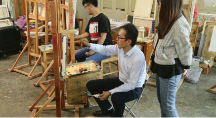 (2014年在教室辅导学生油画作业)