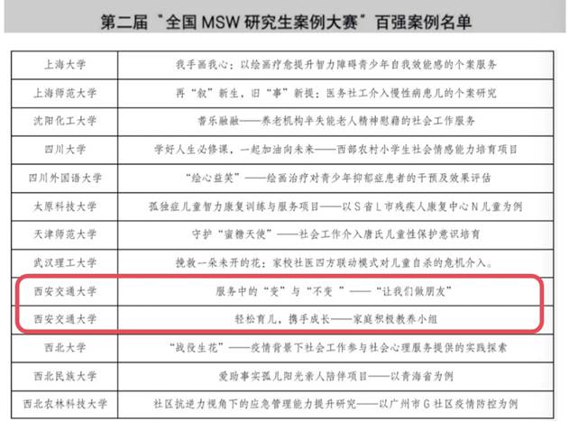 社会工作专业硕士学位点建设的阶段性成果体现。