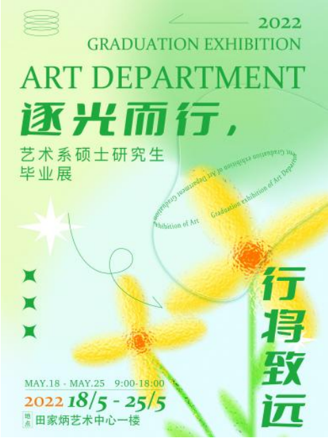 五月维夏,七月徂暑;又是一年绿树阴浓毕业时。2019级艺术系研究生相识于三年前的盛夏。由人文学院主办的“逐光而行,行将致远”艺术展于5月18日在田家炳艺术楼、创新港涵英楼人文学院开展,展出时间为5月18日-5月25日。本次毕业展览由油画、雕塑、中国画、环境设计、视觉传达设计共同开展。此次展览诚挚欢迎关心和关注人文学院艺术系的良师益友和广大艺术爱好者们观展,共同见证2022届同学们令人惊喜的成长进步与毕业成果。