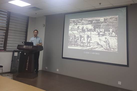 人文学院党委副书记王劲深入浅出,为大家讲述了一系列优秀文艺作品背后的故事与内涵。他表示,在新时代,我们要继续学习毛泽东同志的讲话,讲好中国故事,为时代讴歌,为民族立传。同时,我们还要贯彻落实习近平总书记在文艺工作座谈会上的讲话精神,做德艺双馨的文艺工作者,担当守正创新、培根铸魂的历史使命。
