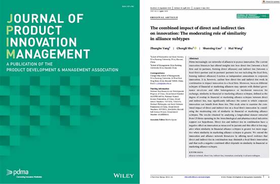 社会学系杨张博副教授领衔撰写的合作研究The Combined Impact of Direct and Indirect Ties on Innovation: The Moderating Role of Similarity in Alliance Sub-types于Journal of Product Innovation Management在线发表。