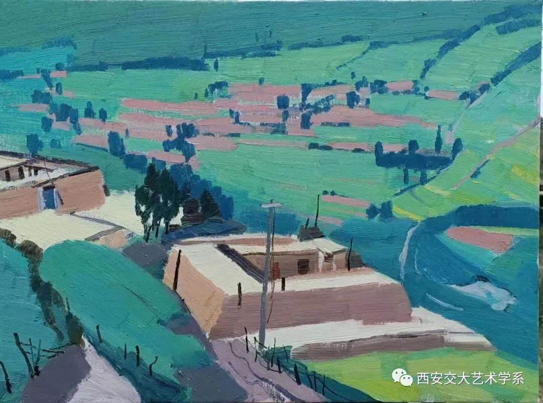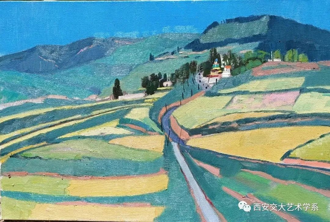 人文学院艺术系油画导师马田宽携2021级硕士研究生程童瑜与陕西省摄影协会会员王会阁女士一行三人前往青海省黄南州尖扎县进行为期两个月的采风写生,目前写生工作已近半。
