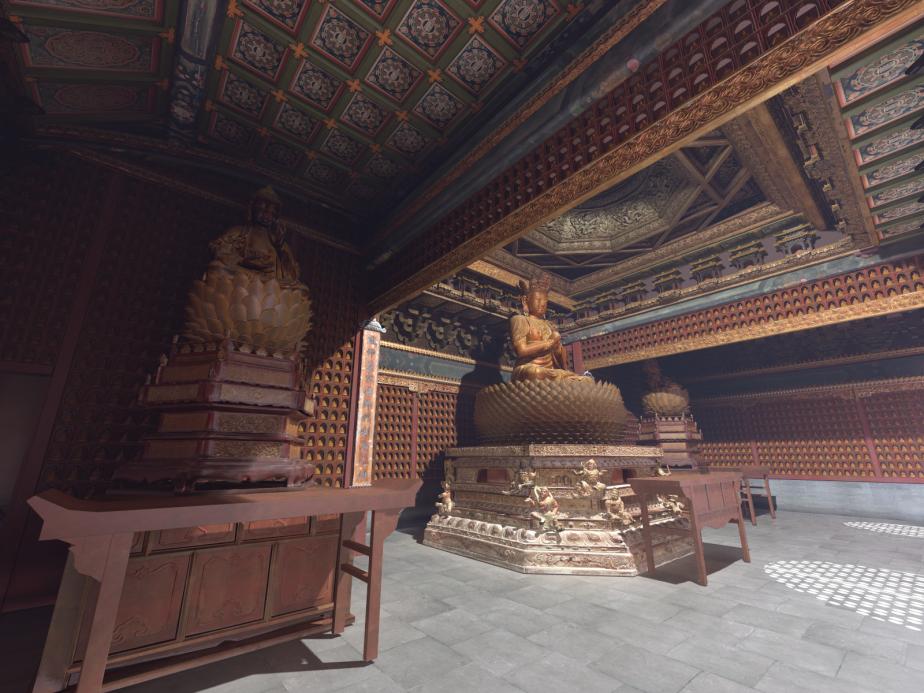 通过对该研究中心欧阳振宇和陈强两位老师的采访,我们得知该团队目前还有多项在研的国际合作项目,如“北京智化寺海外藏藻井的数字化原境还原研究”、“昭陵六骏造型复原及原境再现研究”、“广胜寺壁画数字重构研究”项目等。其中北京智化寺藻井的数字化原境还原项目已接近尾声,该项目历经四年时间,期间组织实施了两次长时间的海外数据采集,最终通过虚拟现实技术解决了北京智化寺藻井与建筑大木作长期分处中美两国的研究窘境,完成了北京智化寺万佛阁、智化殿藻井的数字化原位复原,首次实现了我国流散海外大型不可移动文物的数字化原境还原研究。