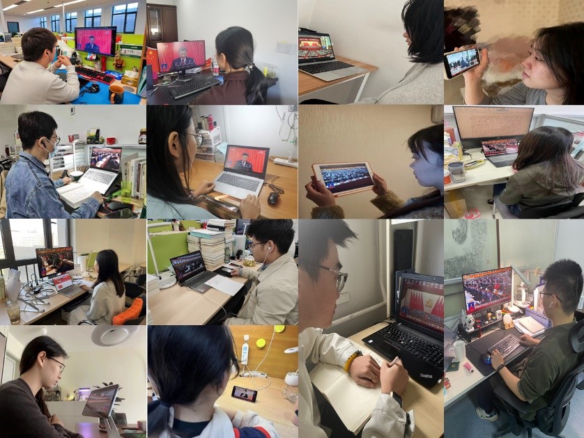 通过观看会议直播,人文学院学子们备受鼓舞,精神振奋,进一步加深了对二十大的认识理解,明确了青年学子的历史使命和责任担当。硕1104和1105党支部闫君瑶同学提到,她将扎根基层,服务人民,在平凡岗位上为我党事业贡献力量。硕2113和2114党支部董玥影讲到,作为青年人,一定要扛起肩上的责任,不忘初心,牢记使命,把个人的发展融入时代和社会的需求中去,祖国需和人民需要我们去哪里,我们就在哪里挥洒青春,为早日实现中华民族伟大复兴贡献自己的力量。硕0114和0117党支部邹铭聪同学表示,作为青年学生,能够处于中华民族伟大复兴的关键节点,是感到无比自豪的,要坚定不移听党话、跟党走,知行合一、廉洁自律、好学不倦、勤政务实,青春不留遗憾,奋斗从未止步。
