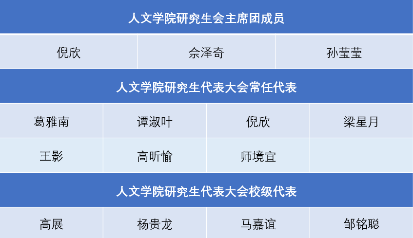 人文学院三名研会主席团成员、七名院级研代会常任代表和四名校级研代会代表。