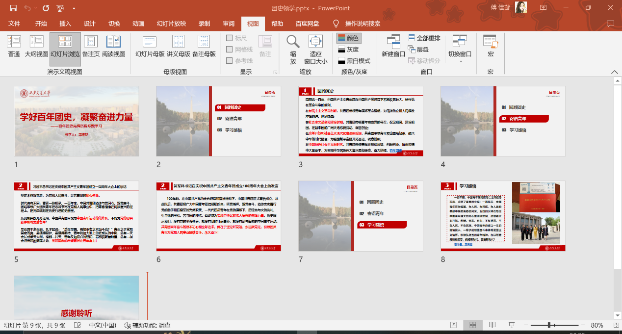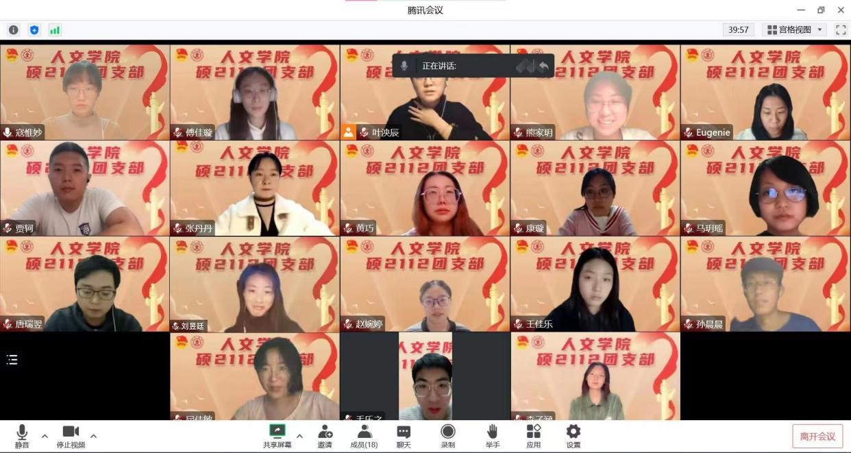 团支部副书记寇惟妙作为团史的领学人,她用视频和演讲相结合的方式,带领同学们回溯了中国共青团的发展历程。在寇惟妙的领学中,同学们感悟到:在漫漫历史的征途里,总有一代代新青年为国家奔走,他们是百年前以血践志的陈延年、陈乔年,是粉身碎骨的董存瑞,是献身扶贫的黄文秀,也是新时代的每一位青年。“鲲鹏击浪从兹始,青年奋进志超越。” 硕2112团支部成员将接过前人手中的接力棒,以国家和社会的需求为导向,做好自己的人生规划。