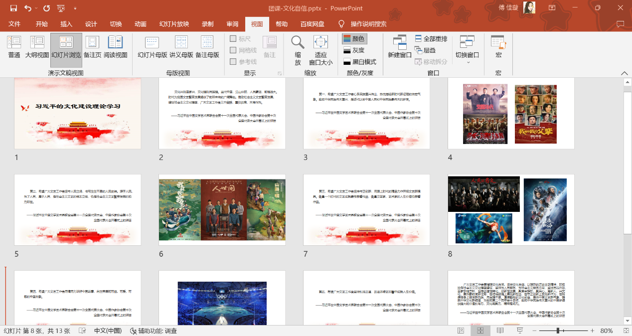 党支部宣传委员傅佳璇结合当下的文化现象解读了习近平在中国文学艺术界联合会第十一次全国代表大会、中国作家协会第十次全国代表大会开幕式上的讲话,号召支部人文学子厚植建设文化强国的使命担当,坚守中华文化立场,让胸怀与创意对接,致力于中华文化的创造性转化和创新性发展。