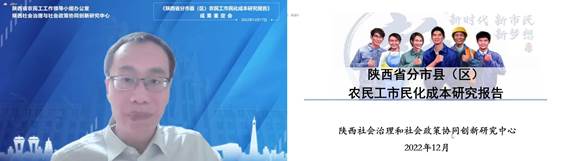 省人社厅农民工工作处刘渤海处长表示,党的二十大对农民工市民化工作提出了新目标、新要求,在加快推进新型城镇化建设和深入实施乡村振兴战略的背景下,做好县域农民工市民化服务保障已是迫切需求。2022年7月,省农民工工作领导小组办公室委托悦中山教授团队围绕陕西省分市县(区)农民工市民化成本问题开展研究。半年来,团队精心组织、严谨设计、全力投入,克服重重困难最终精益求精地完成了研究任务,省人社厅有关部门给予高度评价。他请各位知名专家学者对研究成果和当前的农民工市民化工作多提意见和建议,希望各方共同努力为实现全省农民工工作高质量发展作出新贡献。