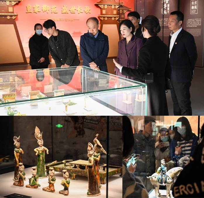 随后,师生乘车游览了兴庆宫园区,与穿行的游人共享满园春光,亭台水榭、直栏曲道,好不优美。一行人途径沉香亭、红军林、蝶舞童真儿童乐园、积庆典建筑群,来到了唐三彩艺术博物馆。作为唐代艺术的瑰宝,唐三彩的出现、盛行及消失,是王朝由盛至衰的见证,是唐人生活的物化记忆。一件件栩栩如生的文物,让文官武将、孩童美人从历史中醒来;胡人与骆驼载着西域的消息,在丝绸之路的往来中让文化涌流,“马帮与驼队日夜兼程,瓷器和丝绸,黄金和琥珀,僧侣与经卷,财富与憧憬,成为漫漫旅途中坚持的梦想”。现在,丝绸之路不仅是一段历史,更是一种使命,它用和平互惠将中外相连,串起沿途各地发展繁荣的愿景。如今向西而行,羌笛无须怨杨柳,春风吹过玉门关。