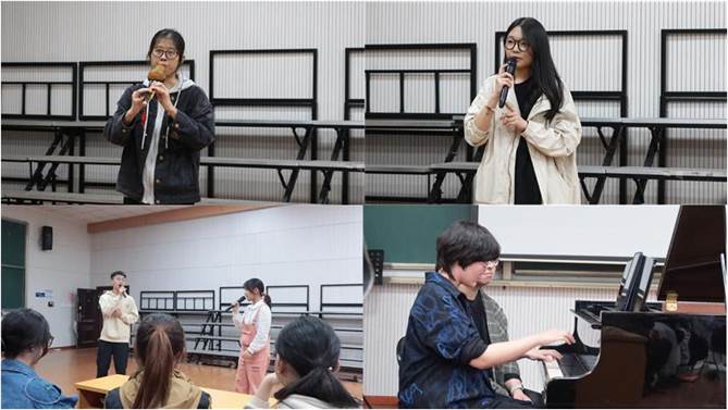 当朱子卿同学带来的葫芦丝演奏《月光下的凤尾竹》的声音响起,让人不禁联想起郁郁葱葱的凤尾竹林,在融融的月光下,竹林中隐隐飘出的阵阵葫芦丝,幽攸抑扬,轻清淡雅。而后刘金一同学的独唱《给电影人的情书》与林柏辰同学、王佳薇同学带来的《飞云之下》,深刻又深情,令人沉浸其中。张怡昕同学钢琴演奏的《匈牙利狂想曲》以匈牙利和吉普赛人的民歌和民间舞曲为基础,一下子将同学们带入到富有民族特色的情境之中。