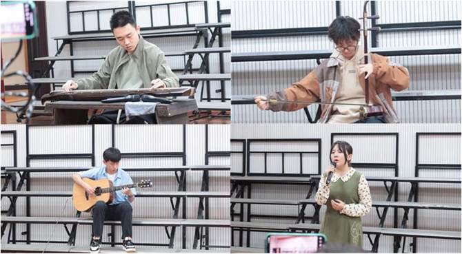 有琴有竹,何不举杯畅饮?朝廷之事,随其崩塌,与我再无干,听我一曲,再饮一杯,再饮一杯!冯长炅同学带来的古琴演奏《酒狂》将我们瞬间带入千年之前的情境之中。之后张真铭同学带来的《兰亭序》让同学们在二胡与歌声中体会一殇一咏,悬笔临碑而心茫然之悲怆。魏子乐同学带来的吉他指弹《黄昏》,融合力量和温柔的韵味让人联想到一幅幅或唯美或悠远或诗意的画面。权若希同学带来的独唱《我怀疑你曾来过》婉转悠扬,极具艺术感染力。