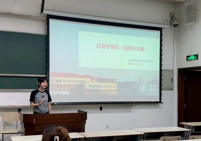 第二位分享嘉宾是已签约阿里巴巴国际贸易事业部的薛莹同学,她向同学们分享了自己的大厂求职经验。她建议大家明确职业规划,做到“人职匹配”,在简历制作和准备面试过程中都要善用“star法则”,展示自己的核心竞争力,并且向研一、研二同学分别给出了自己的求职准备建议。