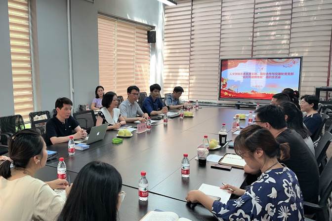 7月11日下午,人文学院艺术系党支部、国际合作与交流处党支部在田家炳艺术中心会议室开展“结对共建解难题”组织生活,围绕国际科研合作项目工作机制进行研讨。人文学院党委书记纪梦然,国际合作与交流处党支部书记刘文凤,国际合作与交流处副处长王嘉寅、孙新宇,人文学院副院长张勇,艺术系主任蒋维乐,双方支部党员代表及教师代表参加会议,会议由艺术系党支部组织委员陈强主持。