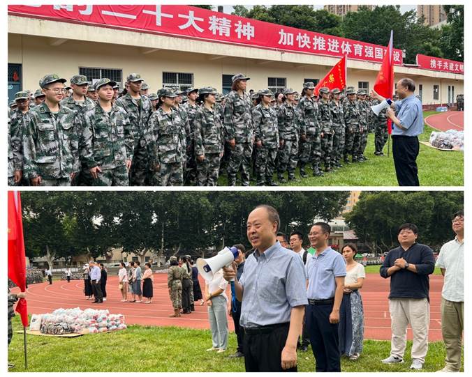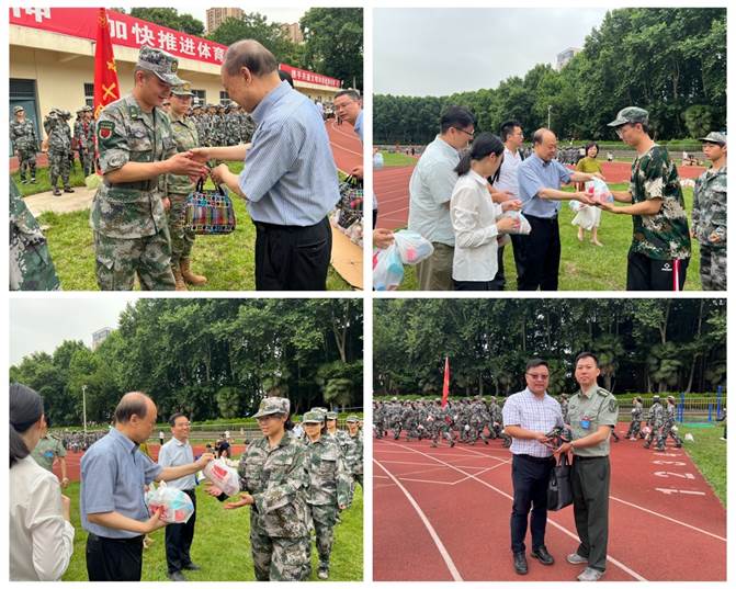 随后,学院领导和教师代表向军训教官、指导员和全体参训学生发放慰问品。老师们将慰问物资亲自发放到每一位同学手中,传递学院的关怀与问候。拳拳爱心,其乐融融。同学们深受鼓舞,群情振奋,现场气氛热烈。