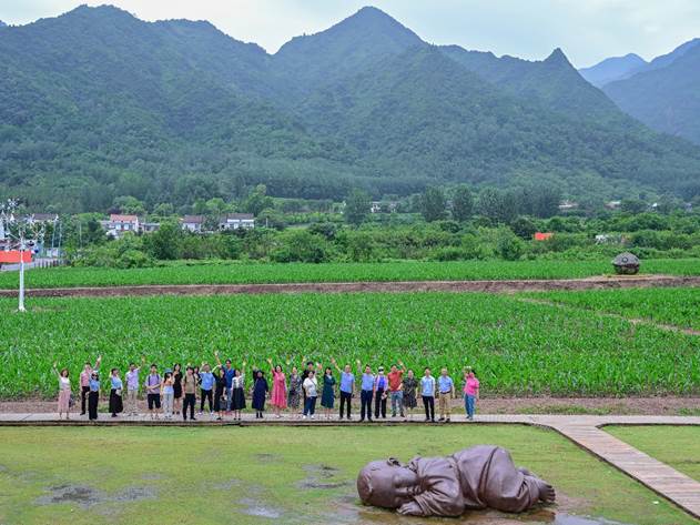 在参观完国家版本馆后,人文学院教师又来到鄠邑区参观了蔡家坡村乡村振兴项目,近期正在展出第五届“忙罢艺术节”相关展览。人文学院艺术系教师也参与了“中国第一本全景式村庄记录图书及展览”等项目。该展览包括终南戏剧节、生态艺术项目、社区艺术项目等多个板块,突出关注乡村社会的乡约、乡礼、乡俗、乡庆等传统,将乡土变为艺术空间。教师们参观了位于村委会的民俗展览,展览以关中农村常用农具为展示对象,将民俗化为艺术品。随后大家又参观了位于蔡家坡村农田间的终南剧场。村落中的民居墙壁上布满了艺术家创作的壁画,田间也陈列着艺术装置,将乡村的农业空间变为令人回味的艺术空间。