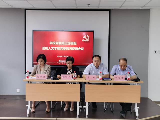 7月20日下午,人文学院党委召开校党委巡视组巡视情况反馈会。校党委常委、统战部部长张定红,巡视组组长常涛,纪委副书记兼办公室主任申丹、巡视办副主任晁长征、巡视办巡视项目主管韩国彦、组织部党建工作主管杨夫腾,人文学院领导班子成员、党委委员、系所(中心)主任、党支部书记及教职工代表参加会议。人文学院院长李黎明主持会议。