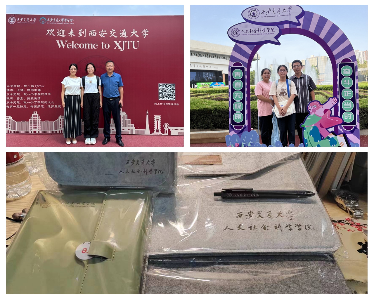 人文学院在迎新期间还为每一位新生准备了贴心的“新生大礼包”,向新生传递浓浓的关怀和温暖,专属logo的文件包、电脑内胆包、数据线包、笔记本、签字笔……每一个精心准备的物品,是关怀亦是期待,为新生开启新的征程助力。人文类2302班李欣夏的家长感慨道:“很荣幸孩子能加入西安交大这个大家庭,踏入校园,绿树成荫,蝉声鸣鸣,百年老校的氛围扑面而来,一路上不仅有学院领导和老师们的亲切问候,更有热情洋溢的志愿者帮忙拿行李,有幸还遇到了和蔼可亲的王树国校长。一想到孩子能在这温暖上进的大家庭里度过大学生活,我们家长就很放心,希望孩子在优秀的学校和老师的带领下继承西迁精神,成长为一个有家国情怀,追求卓越,积极上进的人!”