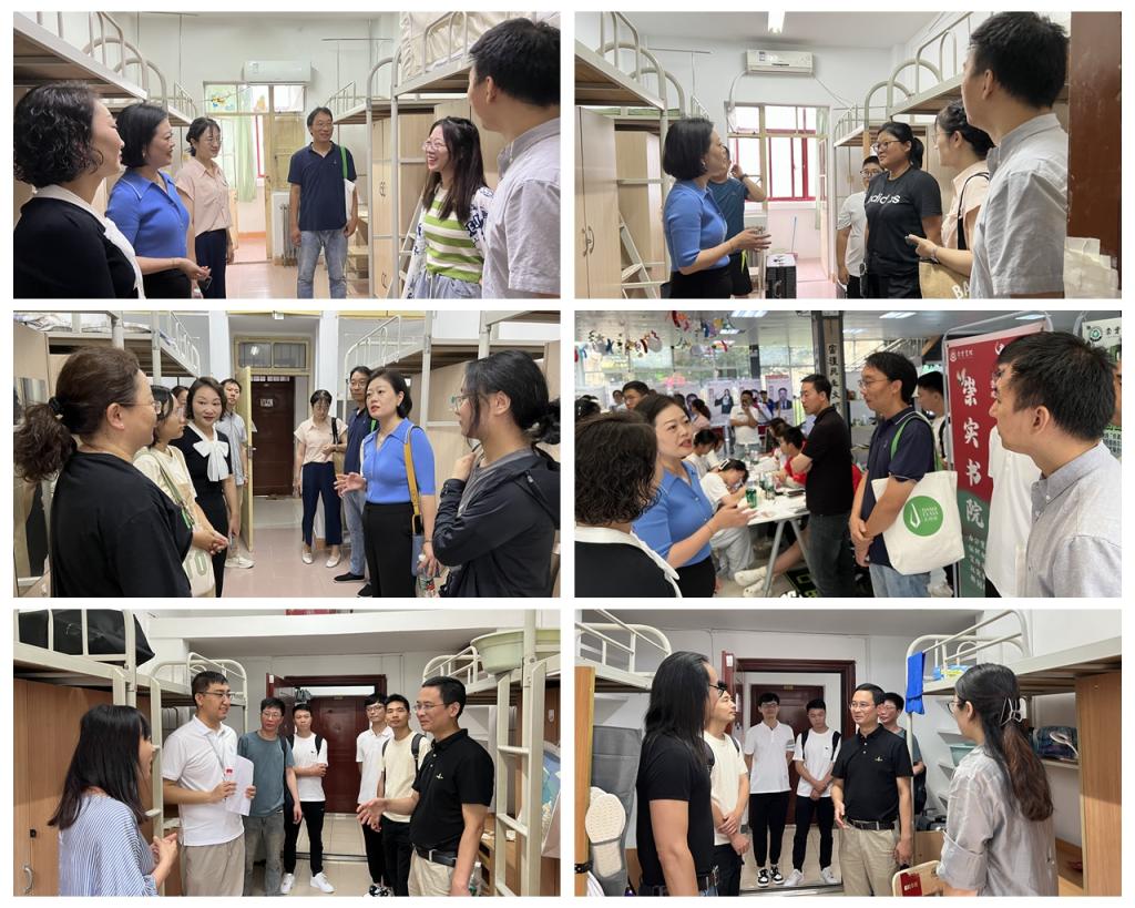 人文学院党委书记纪梦然、党委副书记王劲、崇实书院院务副主任王美玲、2023级新生班主任、辅导员、组织员一同走进新生宿舍,走访慰问新生。