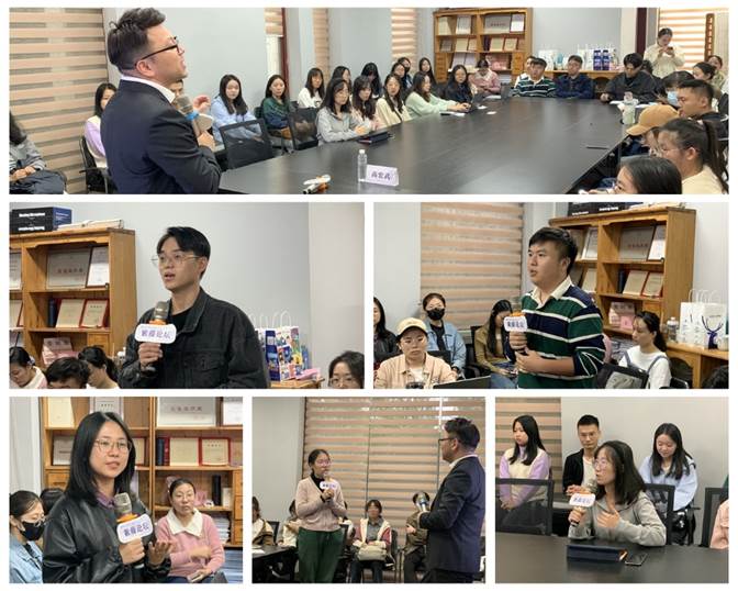 分享会后,高宏武校友与在场学生进行了热烈的互动,现场为大家进行生涯规划、职业选择等多方面面对面答疑解惑。高宏武校友建议同学们在新时代舞台上发掘自我,不断增强专业性和表达能力,注重职业生涯规划和职业平台选择。在场师生报以热烈掌声感谢高宏武校友的精彩分享。