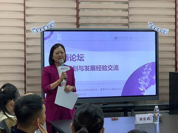 纪梦然致辞并宣布首期“紫藤论坛”开幕。她指出,每年春天田家炳艺术中心紫藤盛开,紫藤花的花语是“深深的思念和执着的等待”,寓意母校春风化雨、哺育英才,关爱每一位校友的成长和发展,静静等待校友们常回母校看看,紫藤论坛旨在聚合校友资源,搭建校友与母校之间的交流平台。参加论坛的校友嘉宾与在校学生分享经验、交流感悟,强化优秀校友的榜样作用,助力学生成长成才。