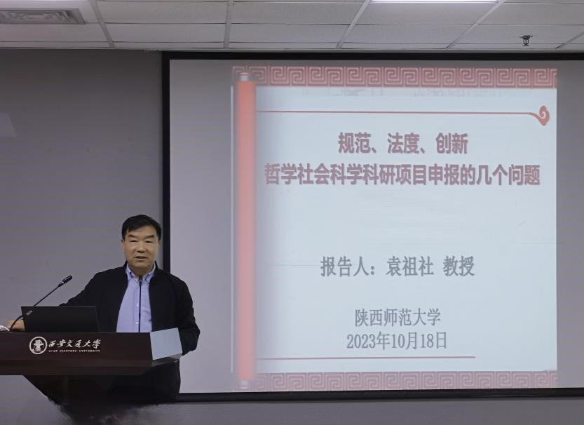 辅导会首先由袁祖社教授作题为《规范、法度、创新,哲学社会科学科研项目申报的几个问题》的辅导讲座。他从如何成功申报一项科研课题、各类课题申报存在的普遍问题、课题申报成功的关键三个方面进行辅导。他强调,申报课题应立足教学和科研实践,结合自主的理论学习,要有问题意识,对现实问题具备敏感性,关心关注国家重大的现实与理论问题,不断完善申报材料的内在逻辑,提升申报书质量。
