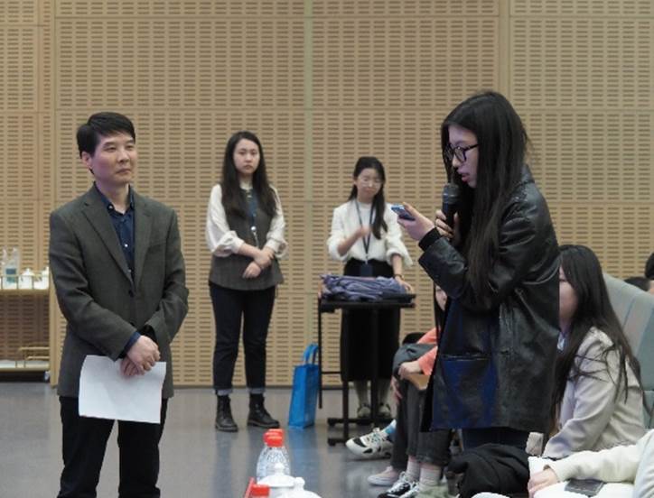 在互动提问环节,同学们就“唐宋山水绘画差异之原因”以及“非专业人士如何培养提高审美鉴赏能力”等问题提出自己的困惑,获得了李松教授专业、细致的答复。李松教授最后呼吁到,只有个人和社会共同努力,才能把中国传统优秀艺术“救活”。