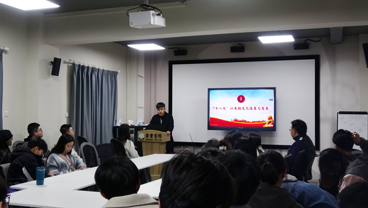 人文学院崇实书院师生联合第一党支部宁远同学做“两会中的文化政策与提案解读”主题分享。他向同学们详细分享了十八大以来我国的文化政策与发展、政府工作报告中的文化显现以及“两会”代表的文化提案等内容,并号召全体同学,身为党员和积极分子,要更加紧密团结在党中央周围,为丰富人民群众精神文化生活贡献力量,为推进社会主义文化建设添砖加瓦。